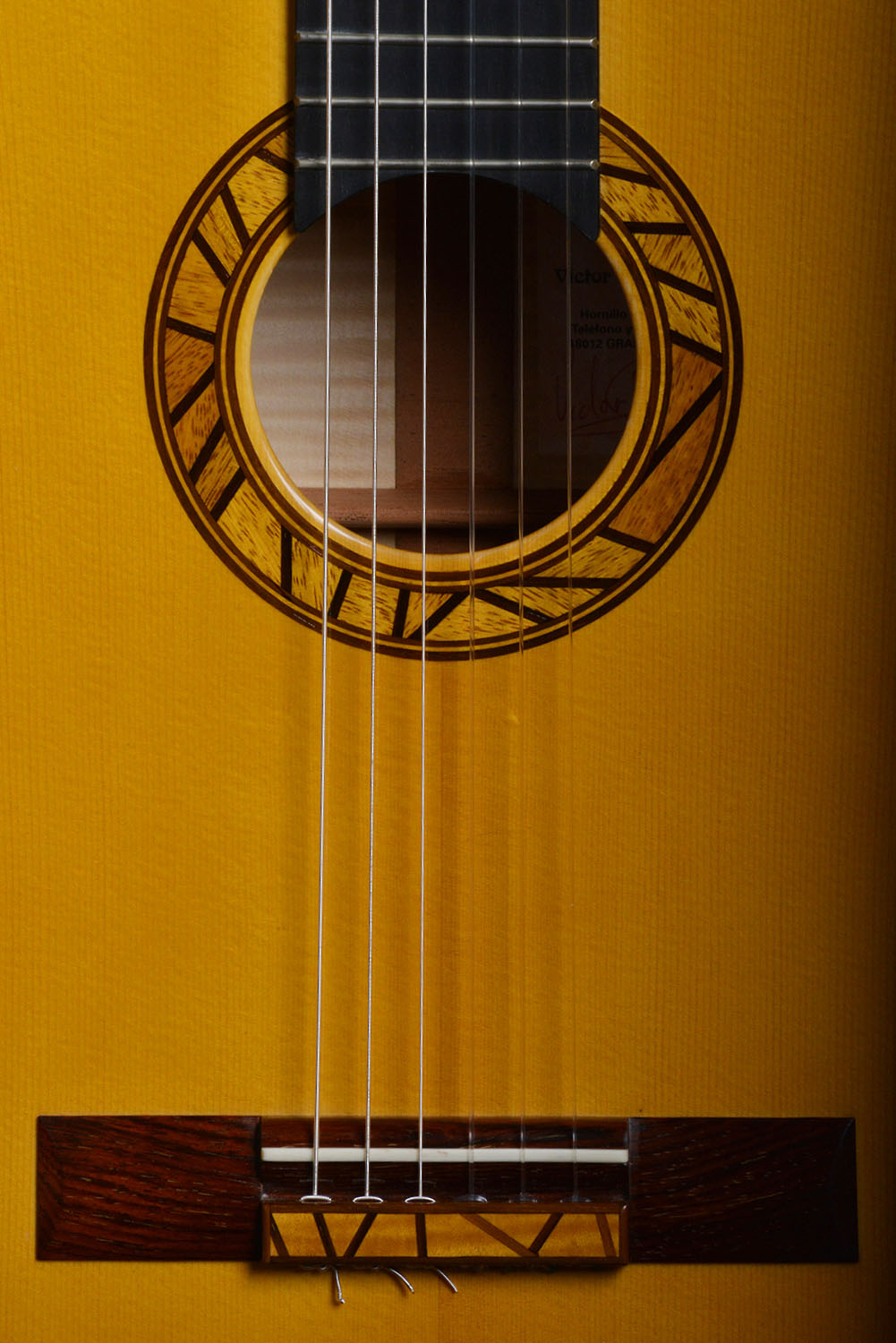 幼少期より、製作家の父F.M.ディアス氏から手ほどきを受けたビクトル・ディアスは、40代前半でありながら、既に製作歴26年のベテラン。弟子のフランシスコ・アルバ(FAI&FAC)と共に、21世紀のグラナダギター製作界の次代の担い手と目されています。両者共日本では無名ですが、音質や仕上げなど、既にグラナダ出身の世界的名工アントニオ・マリン氏の域に肉薄しています。